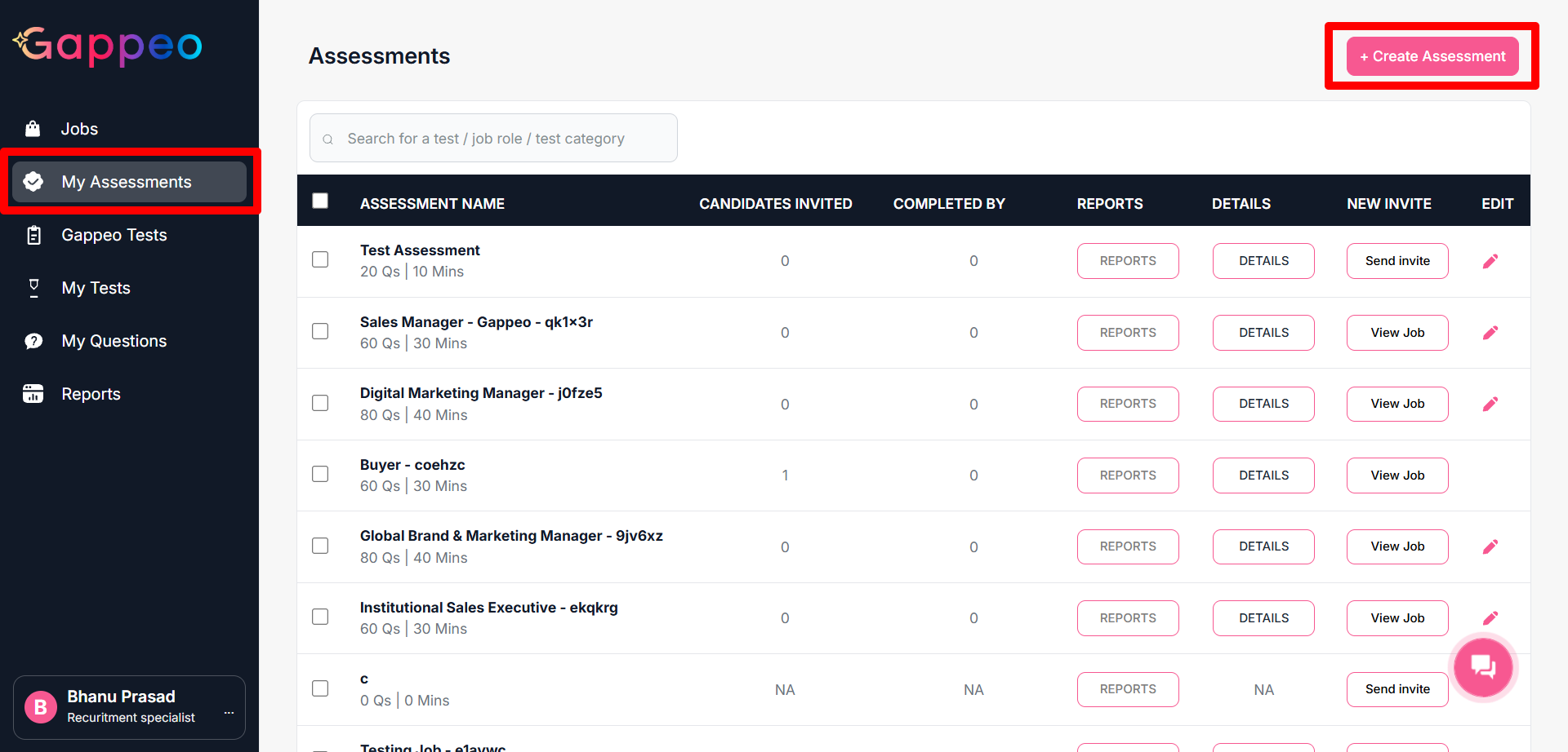 - For example here we have clicked on Sales Manager - Gappeo assessment.